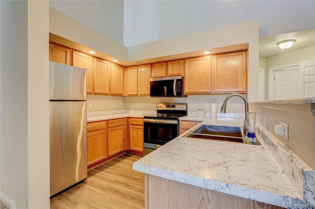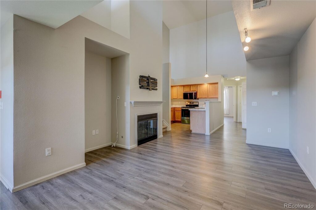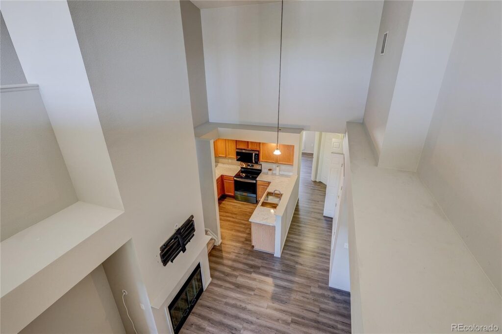 This Turn Key Ready Remodeled Condo lives like a 2 Story Townhouse! Amazing opportunity for owner occupants or rental investors! Come check out this highly sought after Rock Ridge community! Well Kept, Modern buildings with beautiful community pool and misc. open spaces! You will love to call this place home! Oversized 1 car attached garage and additional office street community parking! Small covered front porch area, gives a place similar to an individual balcony. Sit and enjoy a coffee and fresh air! Step inside to find beautiful contemporary finishes and a very inviting vibe to this home! Main floor features a large kitchen, ample living room with a cozy gas fireplace for those cold winters and a large main floor bedroom and full bath! In unit washer and dryer are included! You will absolutely love heading up to your second story area where you will find towering ceiling and a massive loft that can be used as a primary suite or additional living space, studio/office space, exercise space, the possibilities are endless! Updates include newer flooring, new appliances, new carpet, new paint and modern resurfaced kitchen and bath countertops! This home lives large and gives you an open feel with plenty of natural light coming in! This Aurora location is easily accessible to parks, trails, shopping, dinning, E-470, 225, I-70, 6th, Aurora Mall and Town center! Buckley, Fitzsimmons, Children’s, VA Hospital, New Colfax developments! The list goes on and on! Don’t wait to come check this fantastic home and beautiful community!